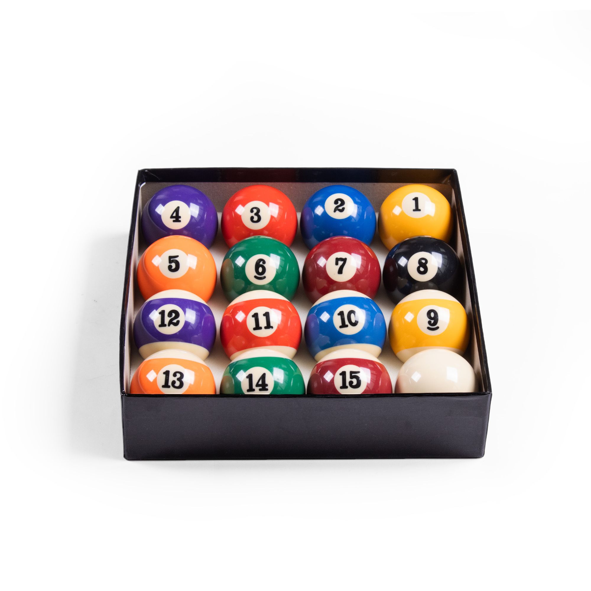 1 Set hochwertiger Billardkugeln – Standardgröße (Ø 57,2 mm), sauber verarbeitet, mit gleichmäßigem Rollverhalten